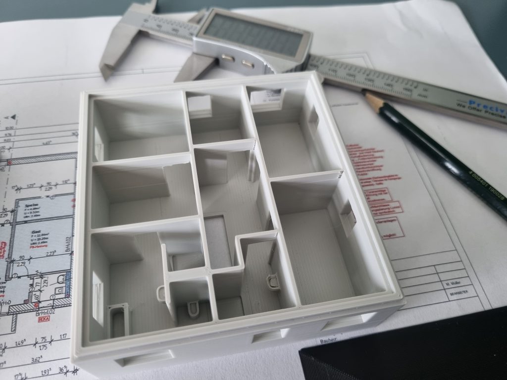 Der 3D-Druck bietet im Bereich der Architektur zahlreiche innovative Möglichkeiten. Mit dieser Technologie lassen sich komplexe Modelle von Gebäuden und Strukturen präzise und detailgetreu herstellen, was die Planung und Visualisierung vereinfacht. Architekten können durch den Einsatz von 3D-Druck maßstabsgetreue Prototypen anfertigen, um Entwürfe zu testen und zu präsentieren.Wer ein Haus plant, kann mit Hilfe des 3D-Drucks einen maßstabsgetreuen Grundriss oder sogar ein detailliertes Modell des zukünftigen Hauses erstellen lassen. Dies ermöglicht es, das geplante Gebäude nicht nur visuell zu erfassen, sondern es im wahrsten Sinne des Wortes zu „begreifen“. Ein physisches Modell hilft, architektonische Details und Raumaufteilungen besser zu verstehen und zu optimieren, bevor der Bau beginnt. So können individuelle Wünsche und Anpassungen präzise berücksichtigt werden, was die Planungssicherheit erhöht und spätere Überraschungen vermeidet.